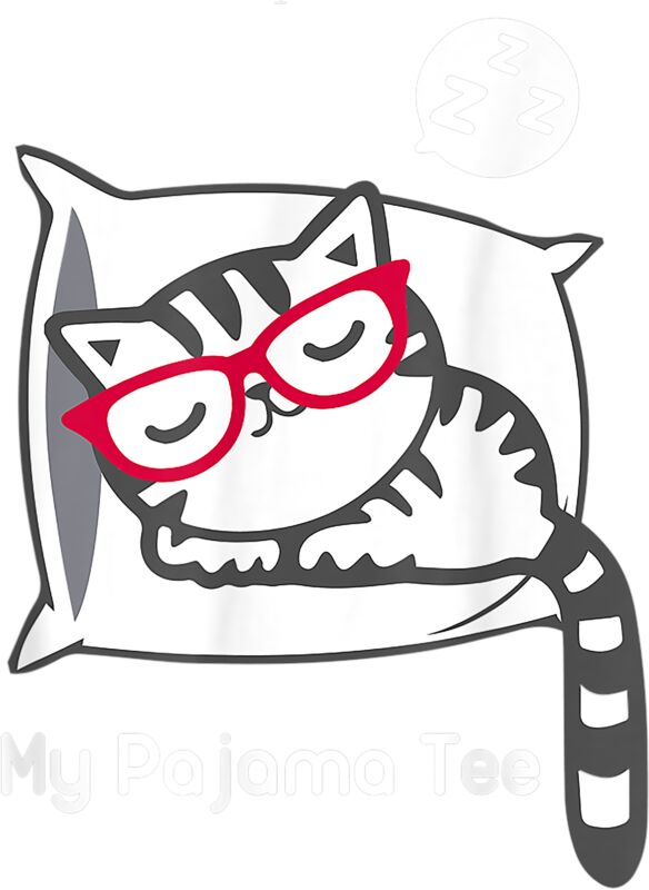 Cat Pajama Shirt Cute Sleeping Kitty with Glasses Pj T Shirt