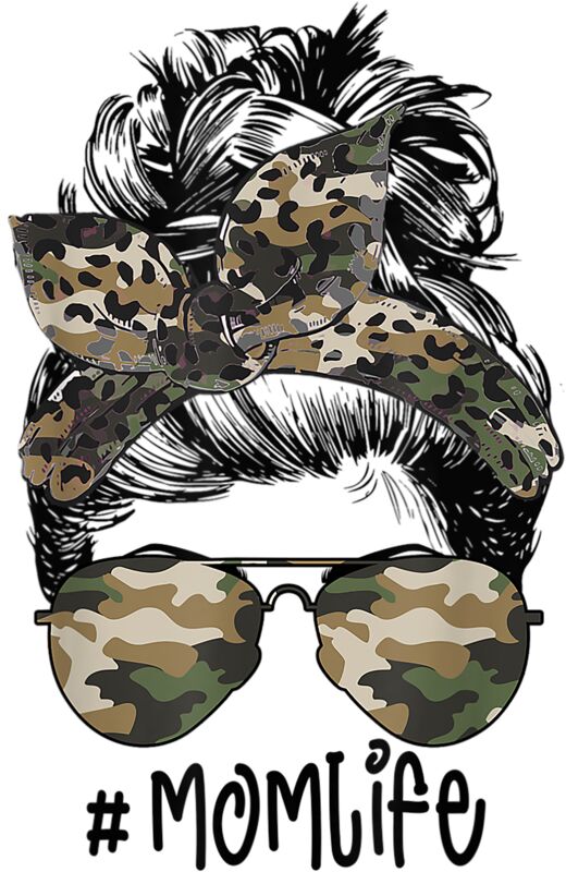 Mom Life Camouflage Glasses Messy Bun Mom Mothers Day 2021 T Shirt