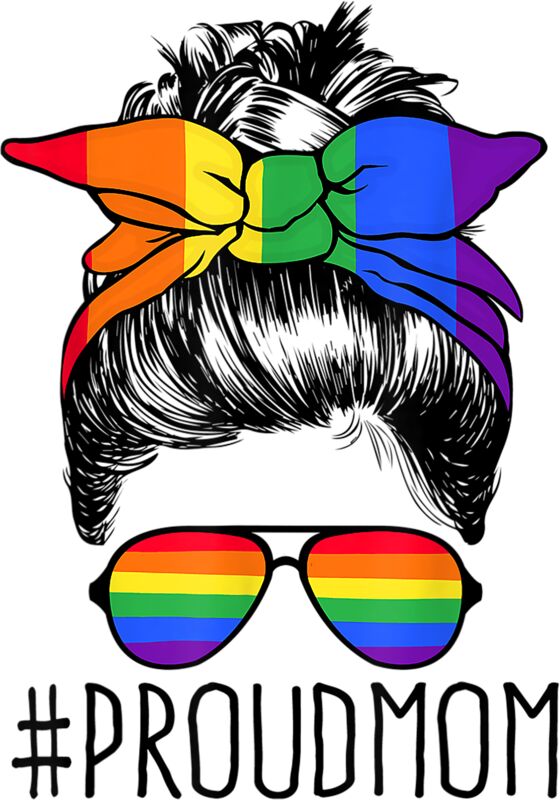 Proud Mom Messy Hair Bun LGBTQ Rainbow Flag LGBT Pride Ally T Shirt
